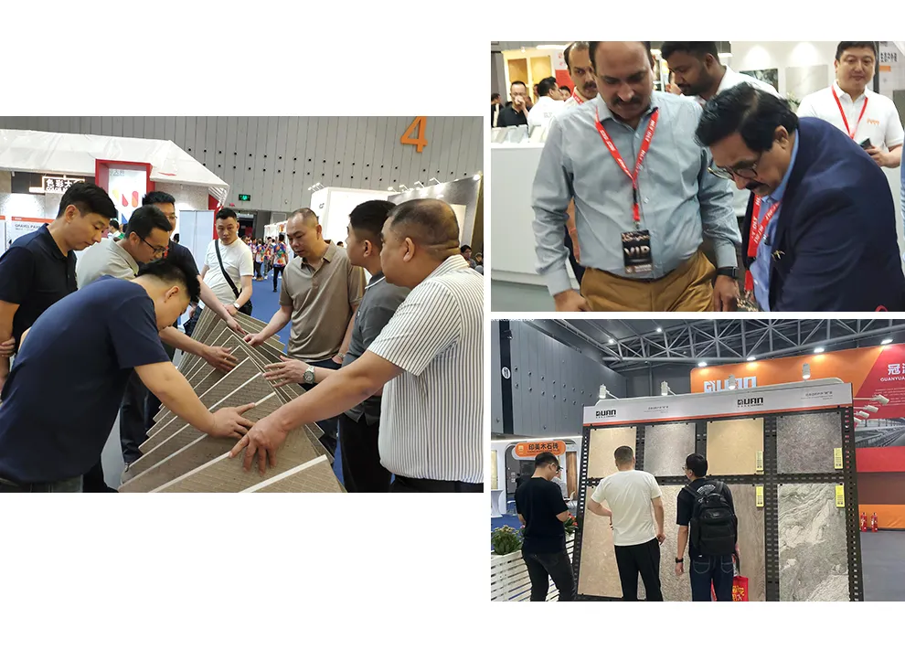 冠源深耕户外厚砖领域,始终坚守“厚度”这一核心优势,不断推陈出新。从18mm、20mm、25mm到30mm等多种厚度选择,以及涵盖理石、木纹、金属、水泥系列到独具匠心的渊系列新品,我们构建了“多厚度、多工艺、多规格、多花色”的全方位产品体系。丰富多彩的产品阵容,吸引了众多参展观众纷纷驻足,竞相观赏。